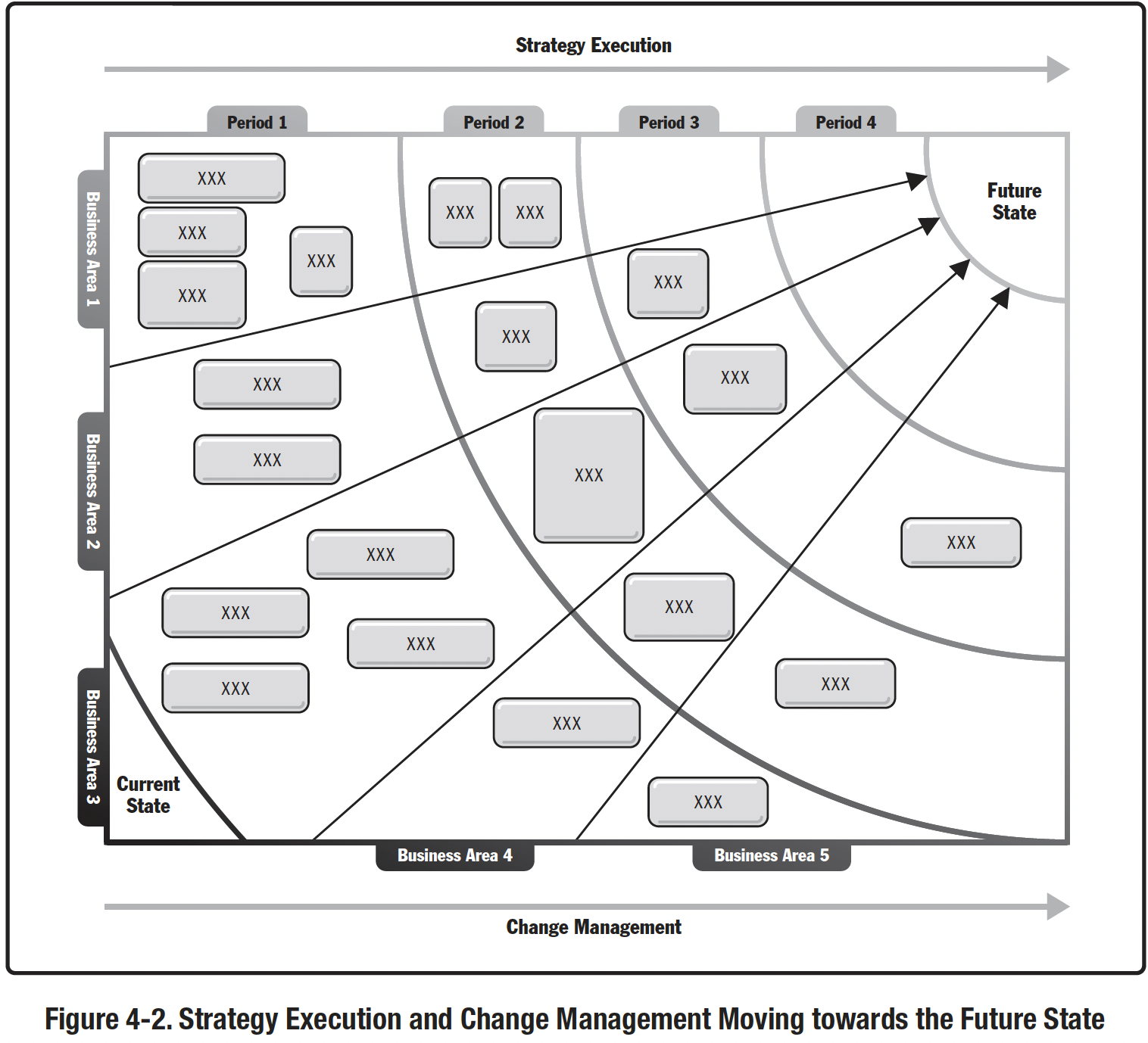 Управління змінами вимагає чіткого бачення майбутнього стану. Стратегічні ініціативи, що складаються з програм та проектів, рухають організацію до цього майбутнього стану. Ініціативи часто включають в себе поєднання одного або декількох з наступних елементів:
