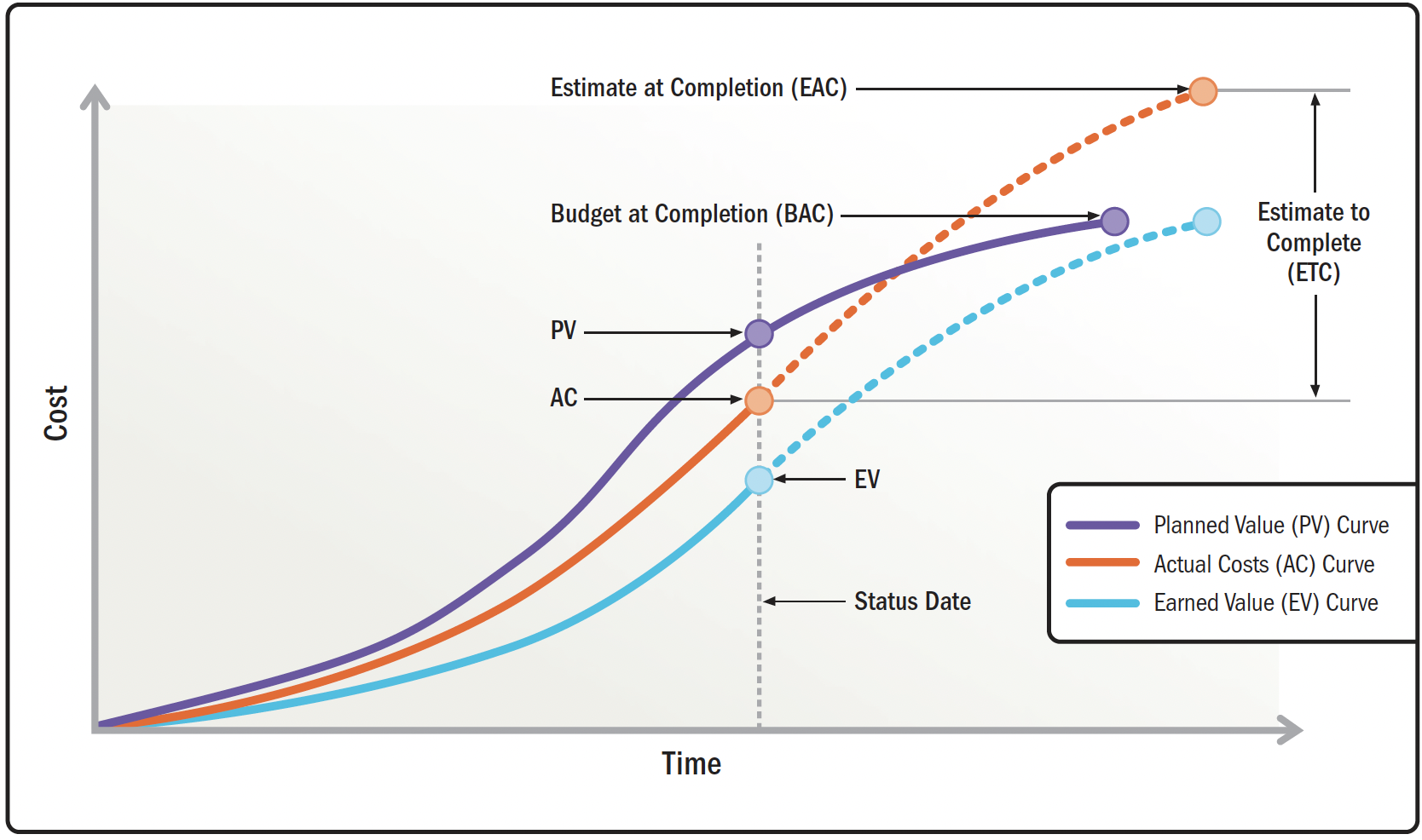 - Відхилення на момент завершення (Variance at completion - VAC). Показник управління заробленою вартістю, який прогнозує розмір дефіциту або профіциту бюджету. Виражається як різниця між бюджетом на момент завершення (BAC) та кошторисом на момент завершення (EAC).