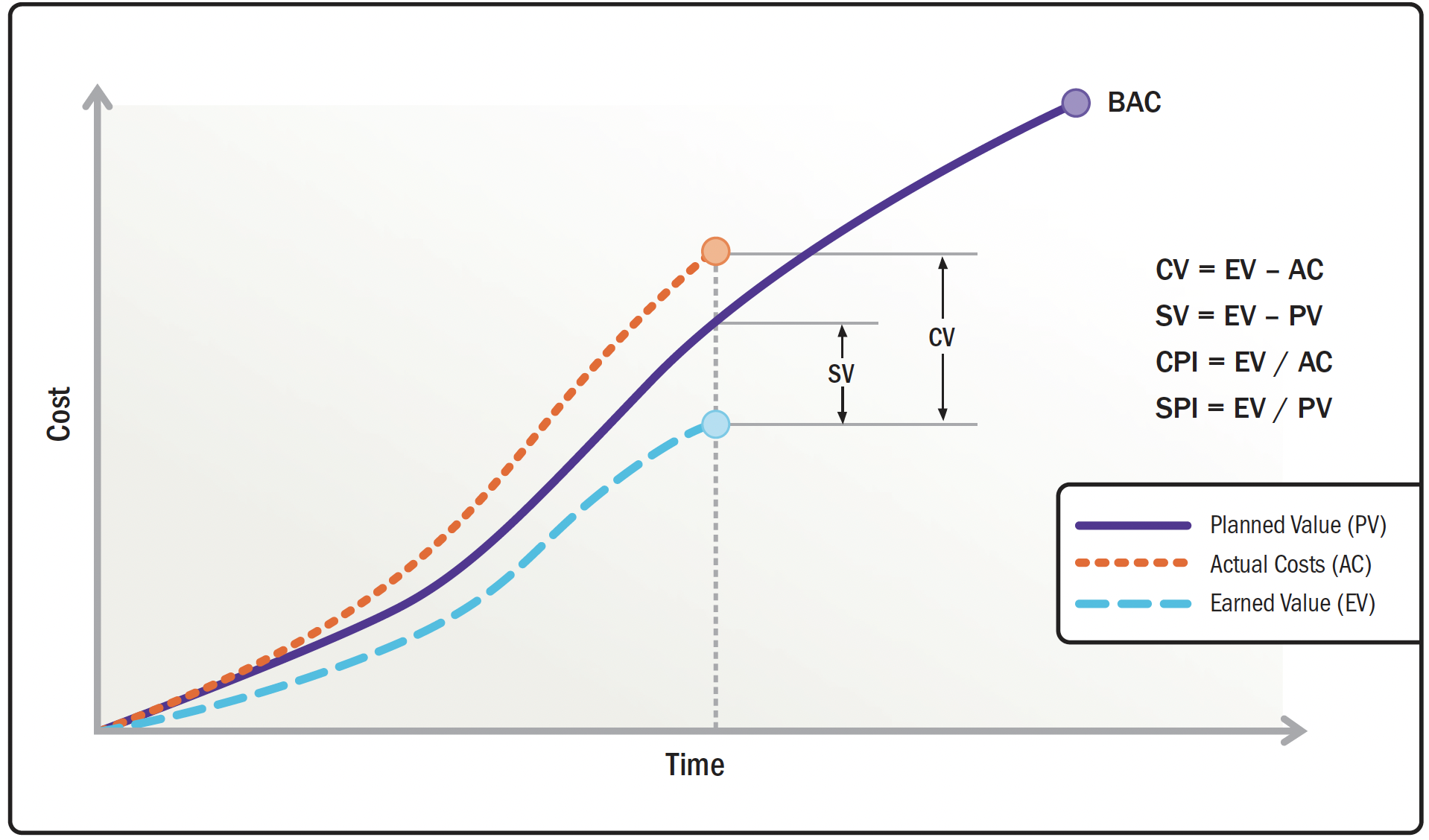 - Індекс ефективності витрат (Cost performance index - CPI). Показник управління заробленою вартістю, який вказує на те, наскільки ефективно виконується робота по відношенню до закладеної в бюджет вартості роботи.